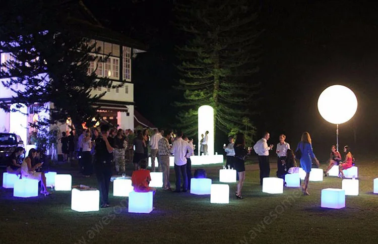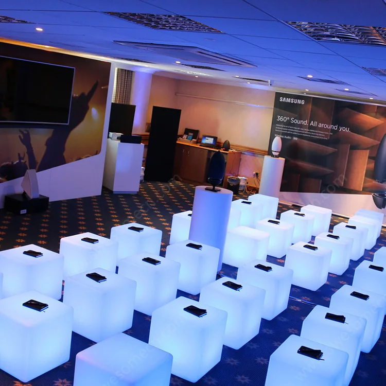 Portable Multi-colored Modern Luminous Leisure Party Event Furniture Waterproof Square Cube Stool for Wedding Outdoor Chair Set